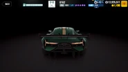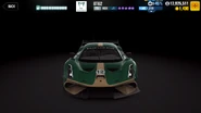 The BT62 has Five spoke Brabham centre lock race spec wheels, Black interior, Metallic Le Mans Green body color and Black brake calipers.